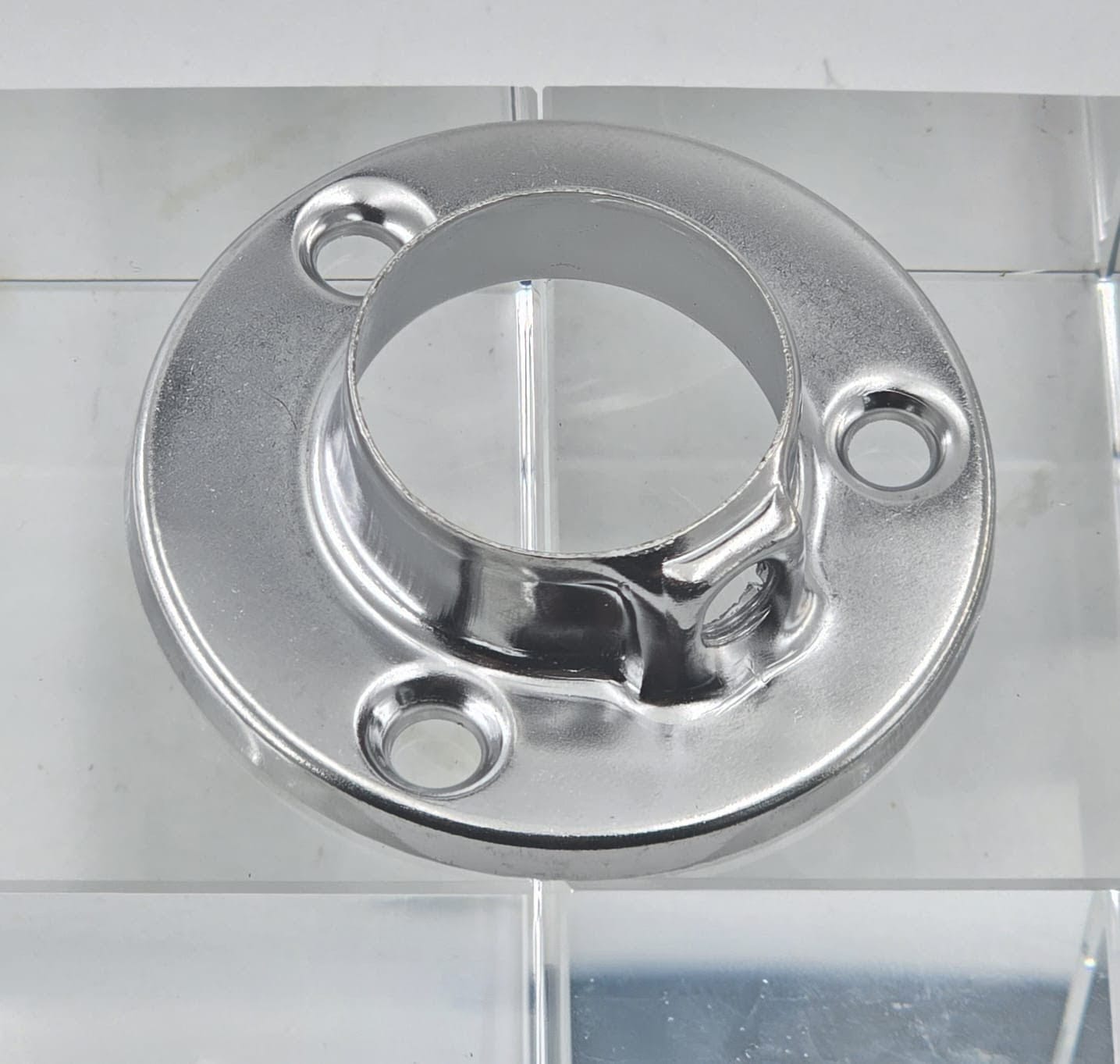 The brackets are then finished with a layer of chrome plating. This provides a bright, polished, and reflective surface that resists corrosion and tarnishing. This chrome finish on these 1-inch pipe brackets not only looks sleek and modern but also makes them easy to clean and maintain. This ensures they remain an attractive part of your decor for years.